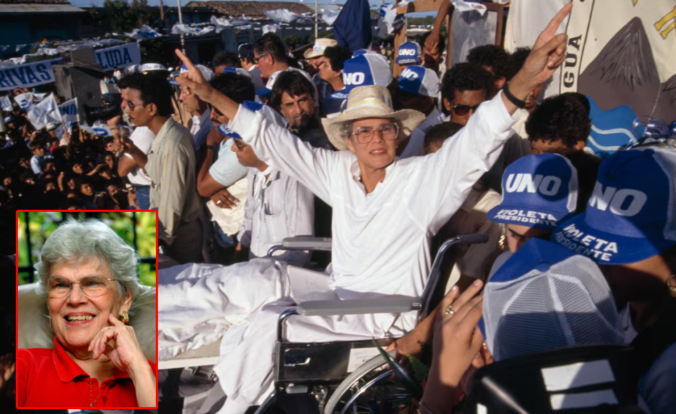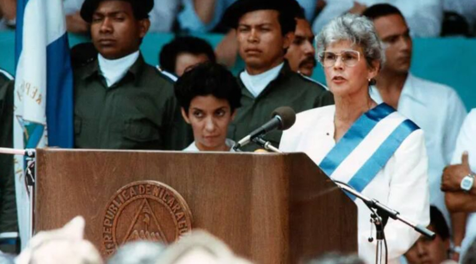 Violeta Barrios de Chamorro fue presidenta de Nicaragua desde 1990 hasta 1997. Su elección marcó un hito para la democracia nicaragüense: puso fin a una década de guerra civil e instauró un proceso de reconciliación nacional, en una etapa especialmente convulsa para el país. Accedió al poder tras derrotar a Daniel Ortega en las urnas, al frente de la Unión Nacional Opositora (UNO), una amplia alianza de partidos. Su victoria y su subsecuente gobierno fueron percibidos como el inicio de una nueva etapa de esperanza para miles de nicaragüenses.